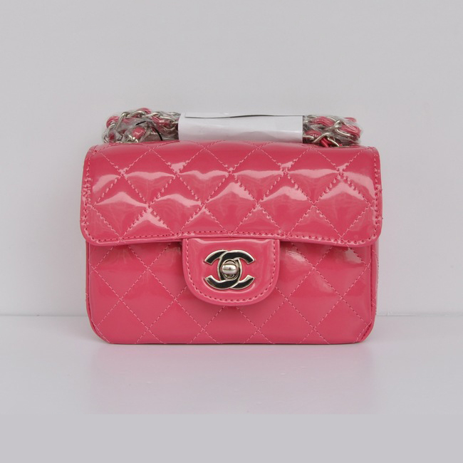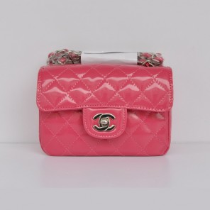 Chanel 1115 mini Classic Flap Bag Patent Leather Peach in Silver