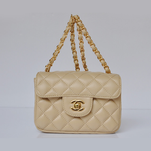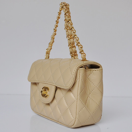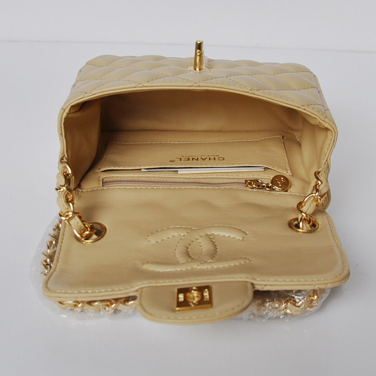 Chanel 1115 mini Classic Flap Bag Sheepskin Leather Apricot in Gold