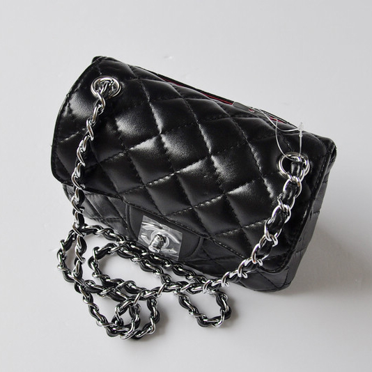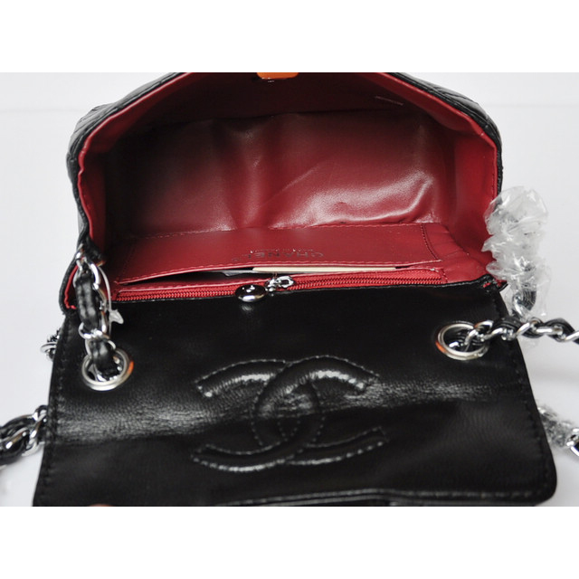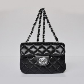 Chanel 1115 mini Classic Flap Bag Sheepskin Leather Black in Silver