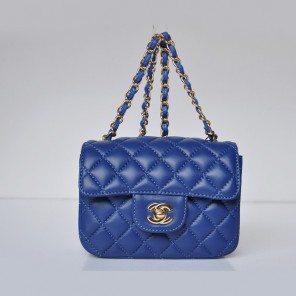 Chanel 1115 mini Classic Flap Bag Sheepskin Leather Blue in Gold