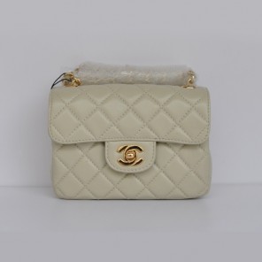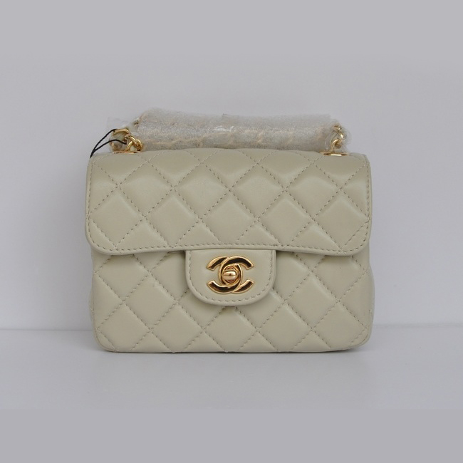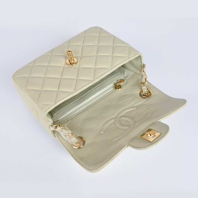 Chanel 1115 mini Classic Flap Bag Sheepskin Leather Offwhite in Gold