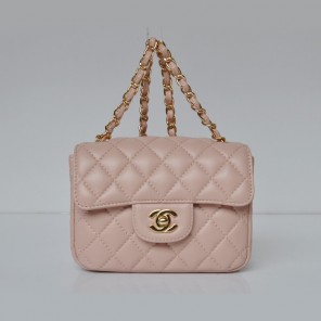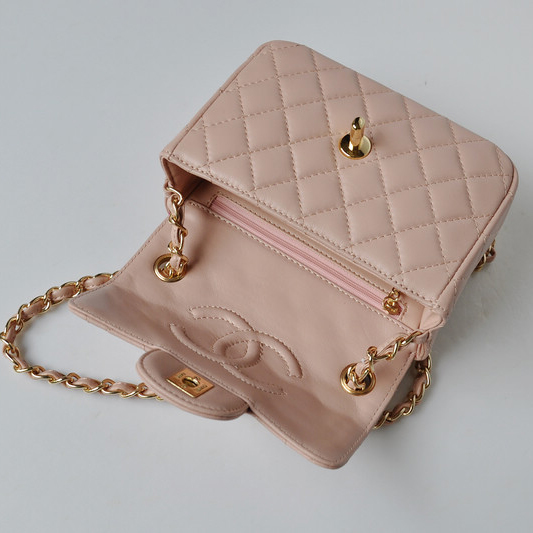 Chanel 1115 mini Classic Flap Bag Sheepskin Leather Pink in Gold