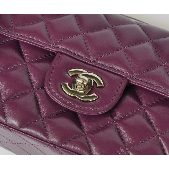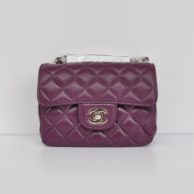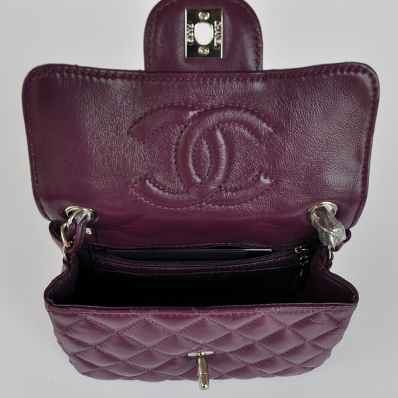 Chanel 1115 mini Classic Flap Bag Sheepskin Leather Purple in Silver