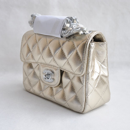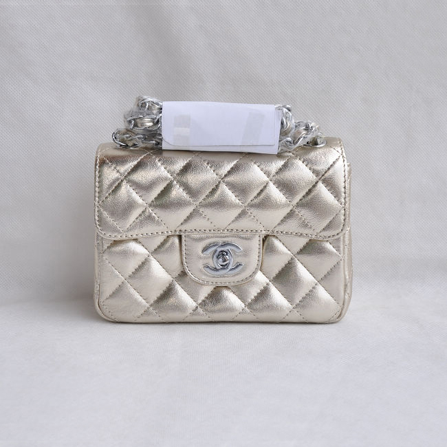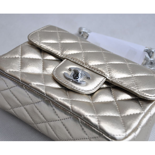 Chanel 1115 mini Classic Flap Bag Sheepskin Leather light gold in Silver