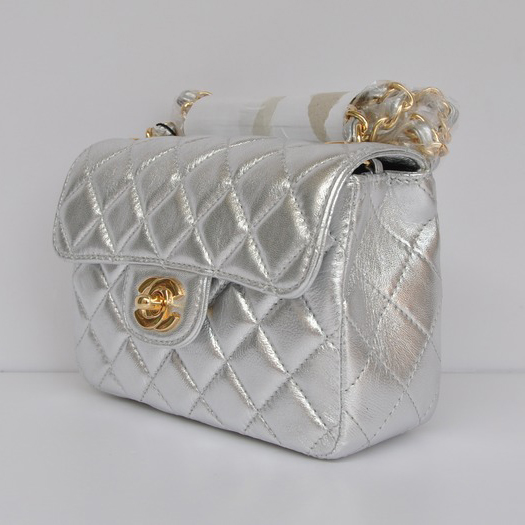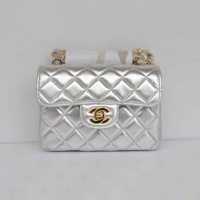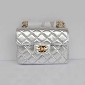 Chanel 1115 mini Classic Flap Bag Sheepskin Leather light silver in Gold