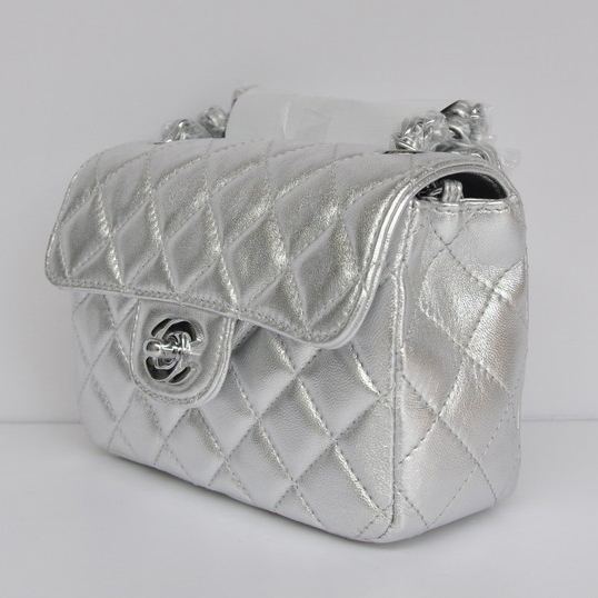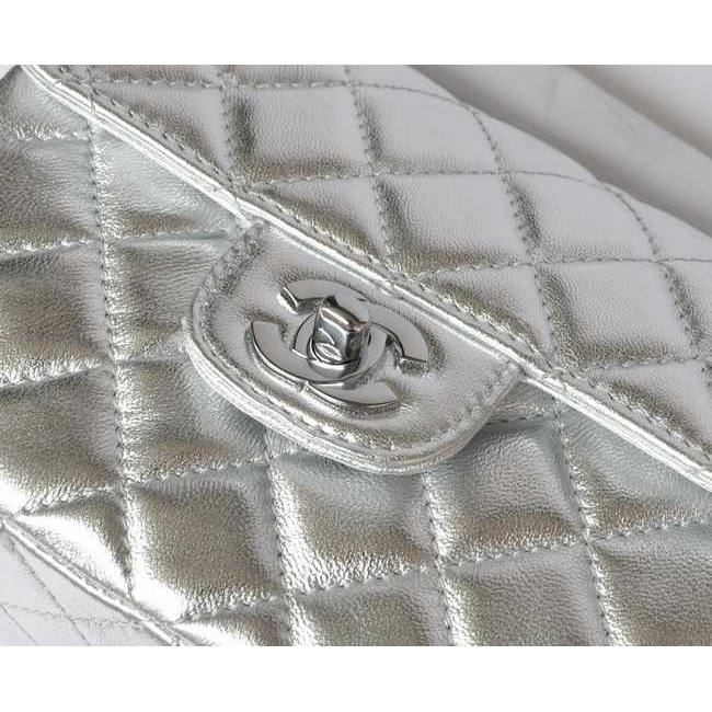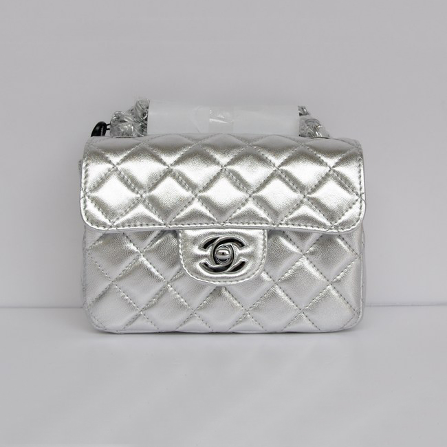 Chanel 1115 mini Classic Flap Bag Sheepskin Leather light silver in Silver
