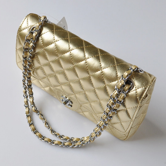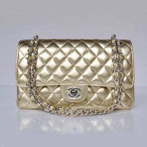 Chanel 2.55 Classic Flap Bag Sheepskin Leather in Gold with Silver Hardware