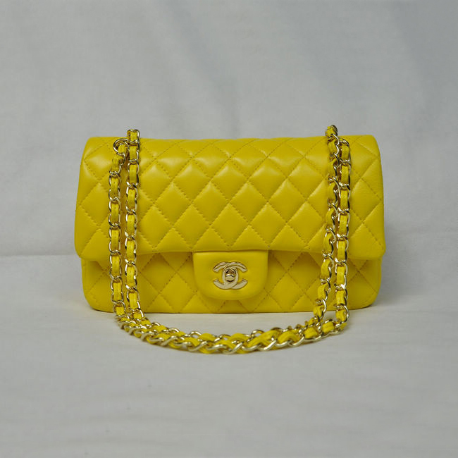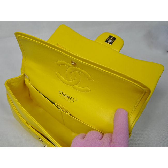 Chanel 2.55 Classic Flap Bag Sheepskin Leather in Lemon with Gold Hardware