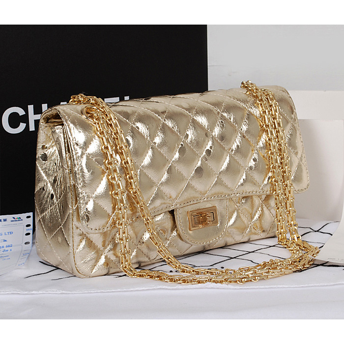 Chanel 2.55 Series Classic Flap Bag 1112 Gold Shiny Gold