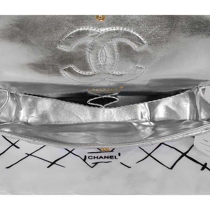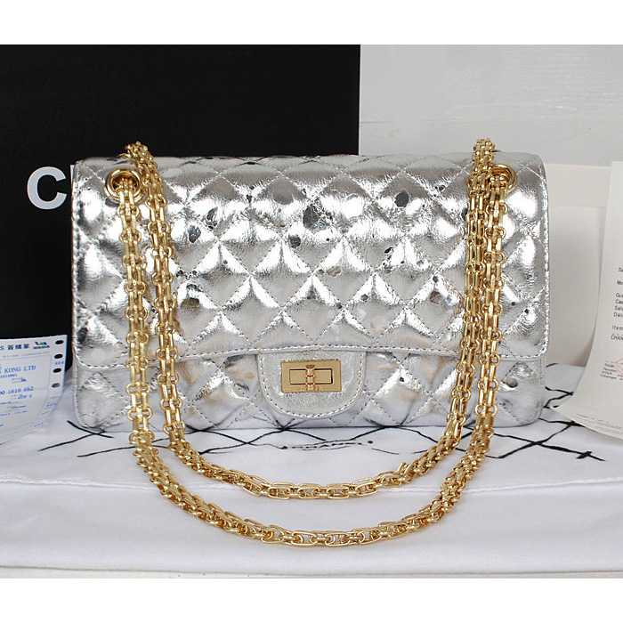 Chanel 2.55 Series Classic Flap Bag 1112 Silver Shiny Gold