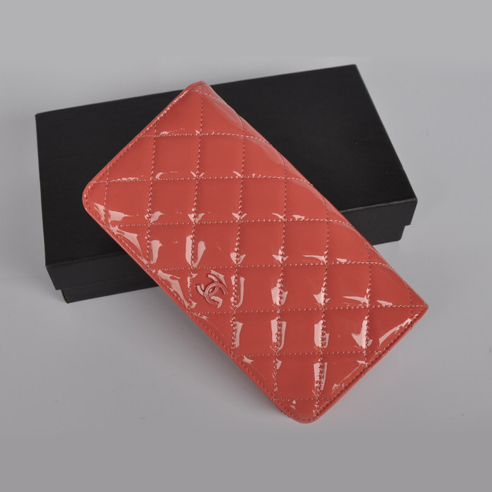 Chanel A001 Patent leather Long Two-Fold Wallets in Pink