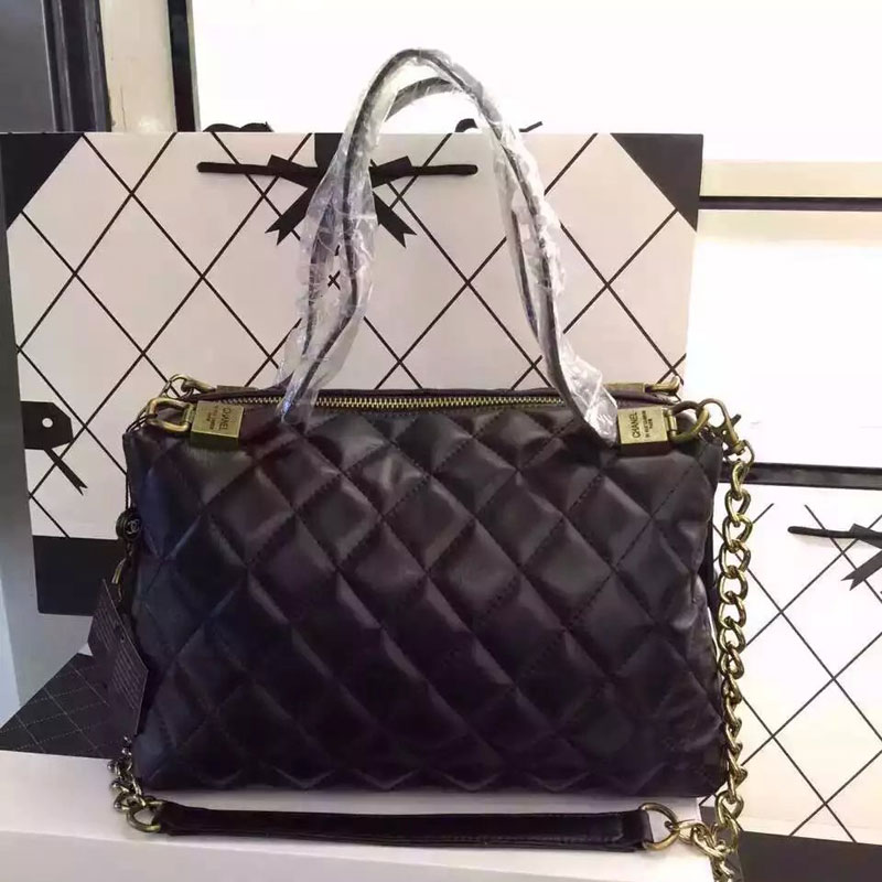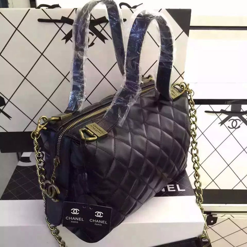 Chanel A2114 Sheepskin Leather Bowling Bag Black