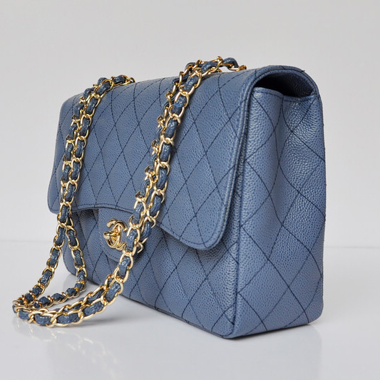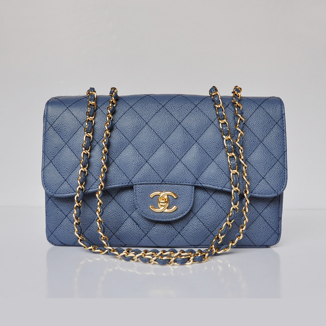 Chanel A28600 Caviar Leather Classic Flap Bag in Blue with Gold