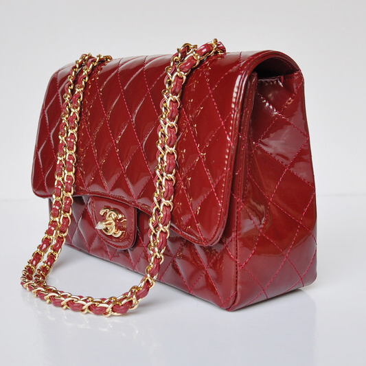 Chanel A28600 Patent Leather Classic Flap Bag in Claret with Gold