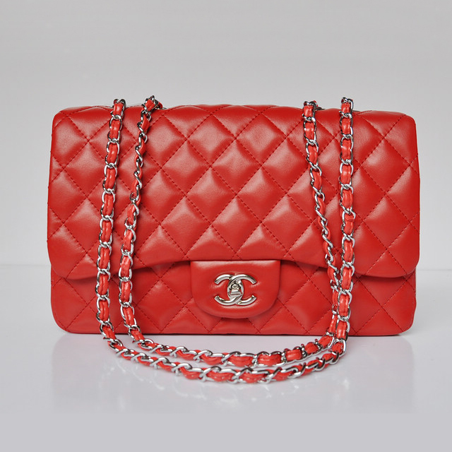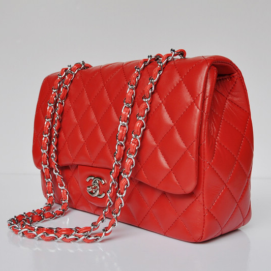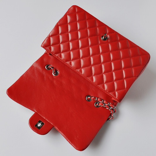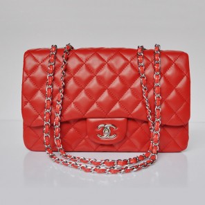 Chanel A28600 Sheepskin Leather Classic Flap Bag in Red with Silver