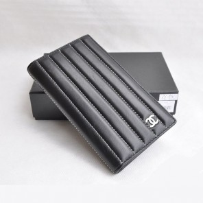 Chanel A30043 Black Lambskin Bi-Fold Wallets
