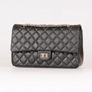 Chanel A30226 Classic Flap Bag Elephant Grain Leather in Black with Silver