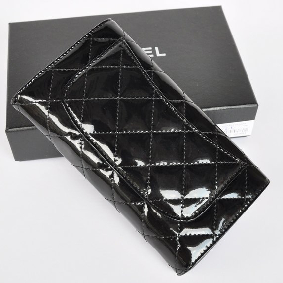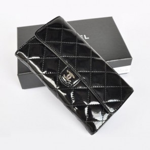 Chanel A31509 Patent leather Long Tri-Fold Wallets in Black