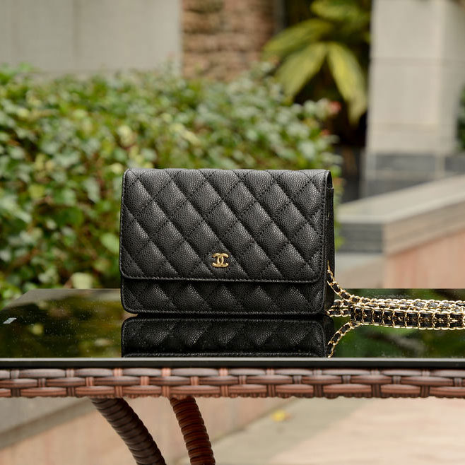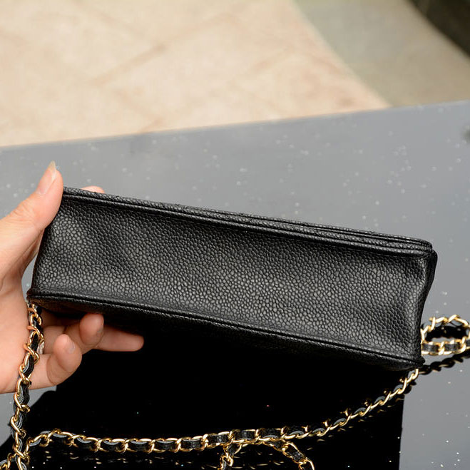 Chanel A33814 Black Caviar Leather mini Flap Bag Gold