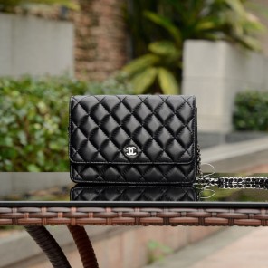 Chanel A33814 Black Sheepskin Leather mini Flap Bag Silver