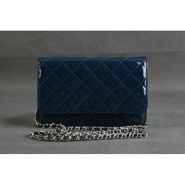 Chanel A33814 Original Patent Leather Flap Bag Royalblue in Silver