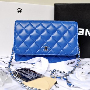 Chanel A33814 Original Sheepskin Leather mini Flap Bag Blue with Silver