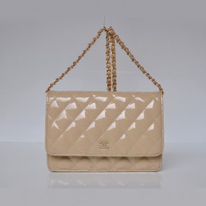 Chanel A33814 Patent Leather Flap Bag Apricot in Gold