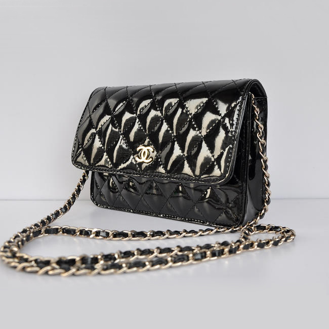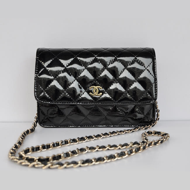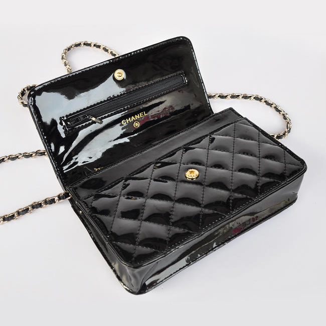 Chanel A33814 Patent Leather Flap Bag Black in Gold