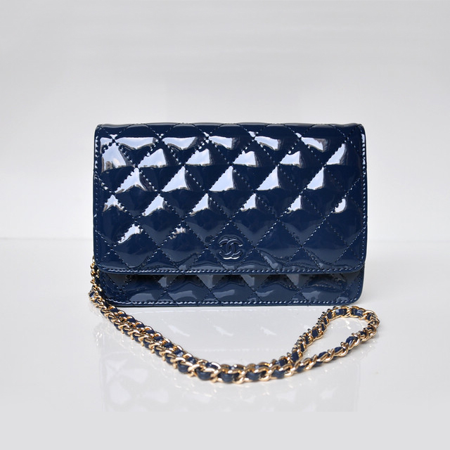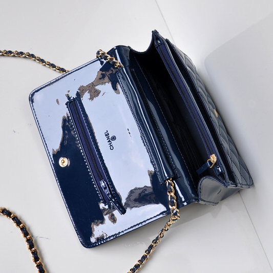 Chanel A33814 Patent Leather Flap Bag Blue in Gold