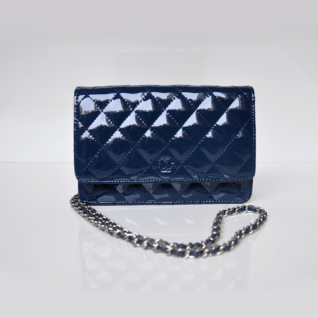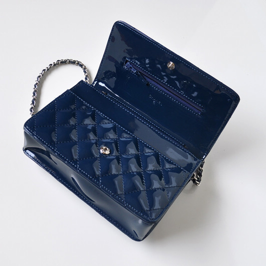 Chanel A33814 Patent Leather Flap Bag Blue in Silver