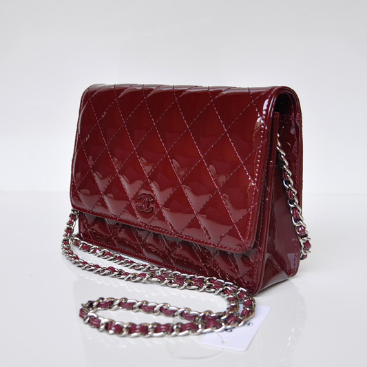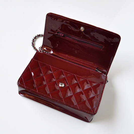 Chanel A33814 Patent Leather Flap Bag Claret in Silver