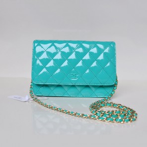 Chanel A33814 Patent Leather Flap Bag Lake green in Gold
