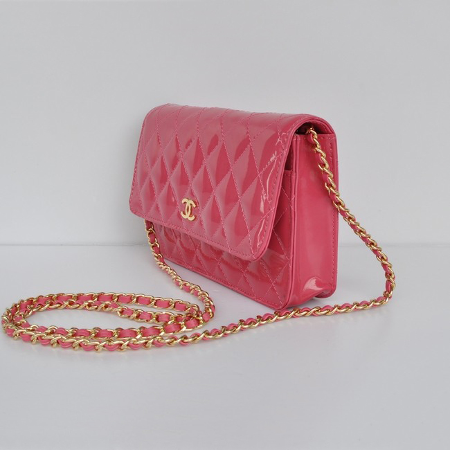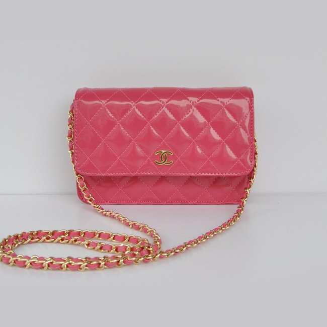 Chanel A33814 Patent Leather Flap Bag Peach in Gold