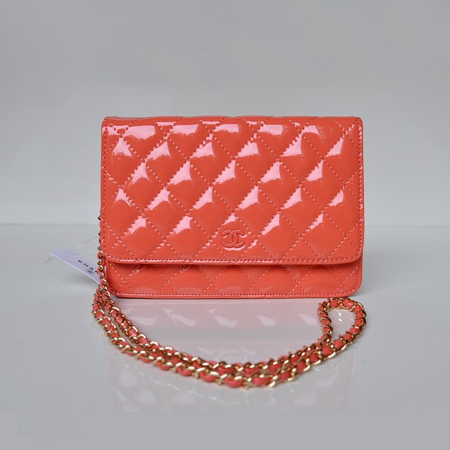 Chanel A33814 Patent Leather Flap Bag Peach in Gold