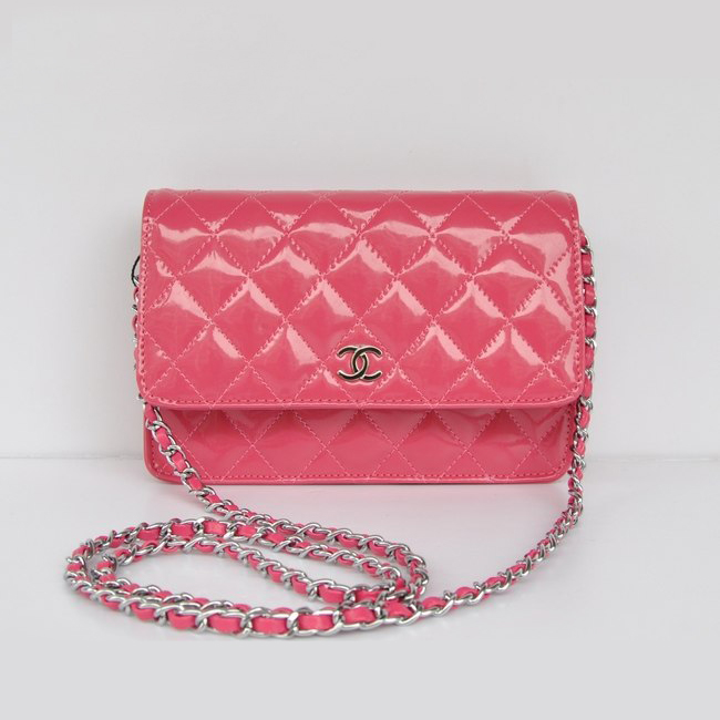 Chanel A33814 Patent Leather Flap Bag Peach in Silver