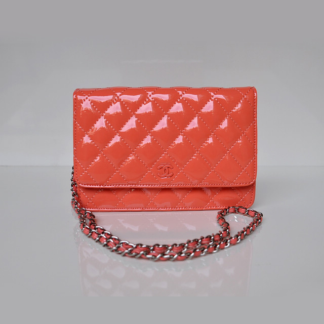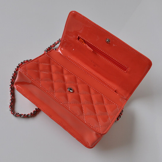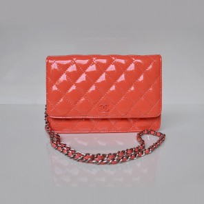 Chanel A33814 Patent Leather Flap Bag Peach in Silver
