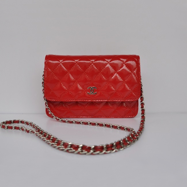 Chanel A33814 Patent Leather Flap Bag Red in Silver