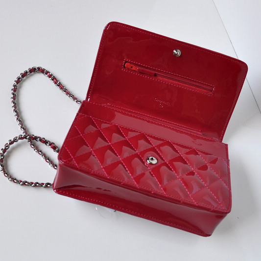 Chanel A33814 Patent Leather Flap Bag Rose in Silver