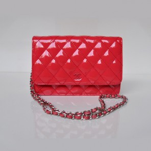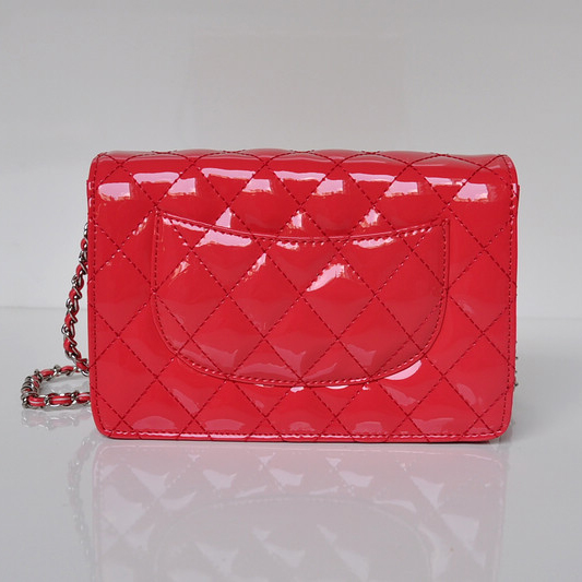 Chanel A33814 Patent Leather Flap Bag Watermelon red in Silver