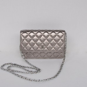 Chanel A33814 Sheepskin Leather Flap Bag Antique Silver in Silver