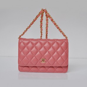 Chanel A33814 Sheepskin Leather Flap Bag Peach in Gold