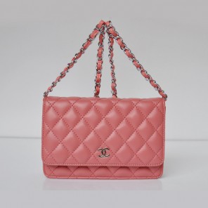 Chanel A33814 Sheepskin Leather Flap Bag Peach in Silver