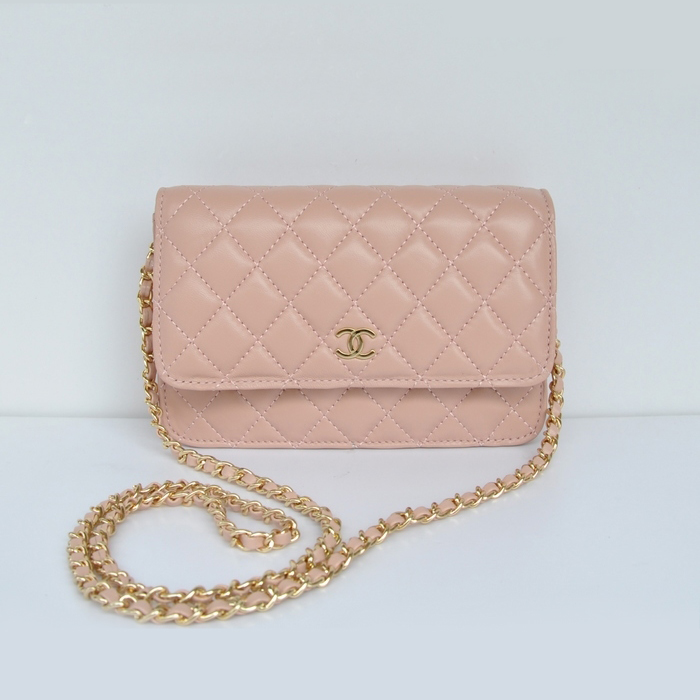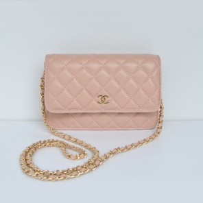 Chanel A33814 Sheepskin Leather Flap Bag Pink in Gold
