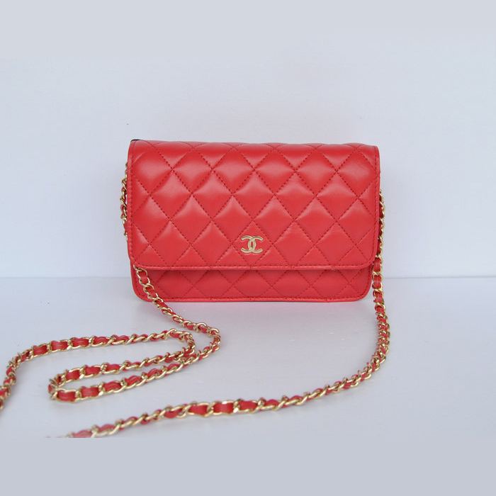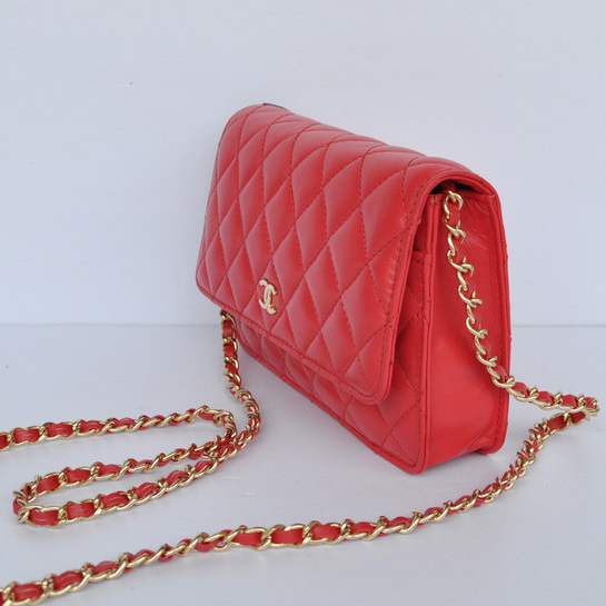 Chanel A33814 Sheepskin Leather Flap Bag Red in Gold
