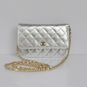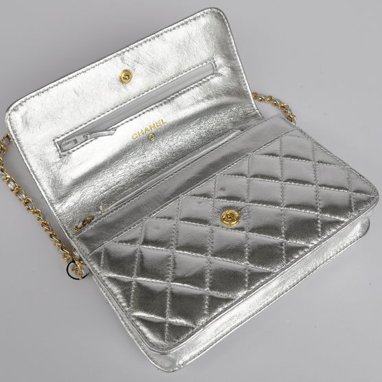 Chanel A33814 Sheepskin Leather Flap Bag Silver in Gold