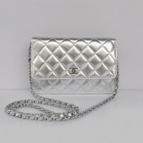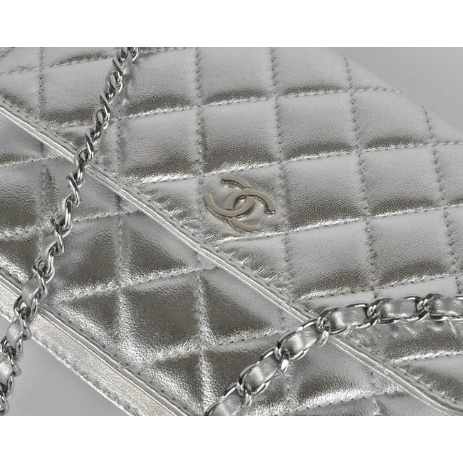Chanel A33814 Sheepskin Leather Flap Bag Silver in Silver