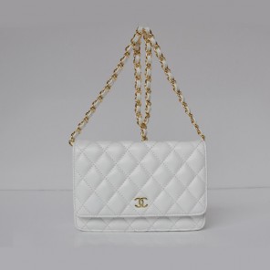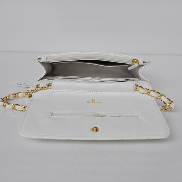 Chanel A33814 Sheepskin Leather Flap Bag White in Gold