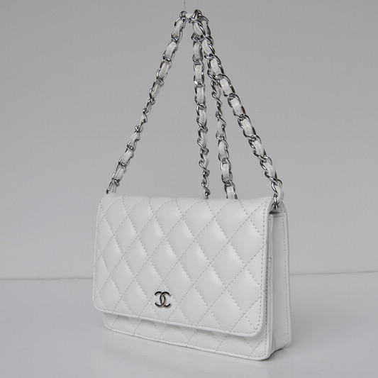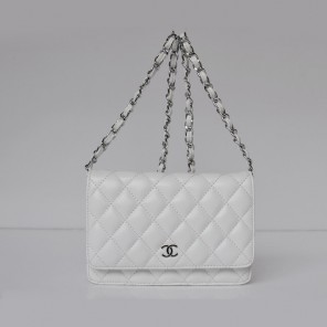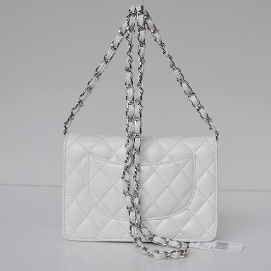 Chanel A33814 Sheepskin Leather Flap Bag White in Silver