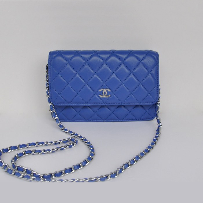 Chanel A33814 Sheepskin Leather Flap Bag blue in Silver