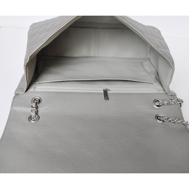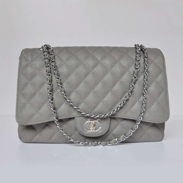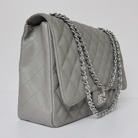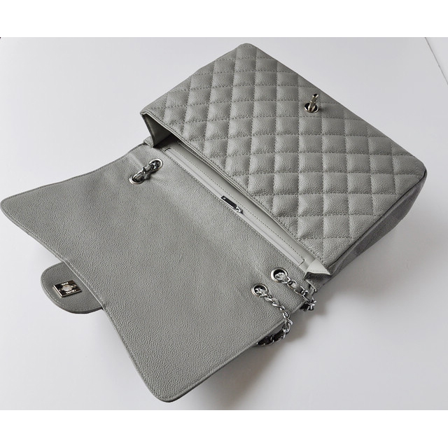 Chanel A47600 Caviar Leather Jumbo Flap Bag in Gray with Silver